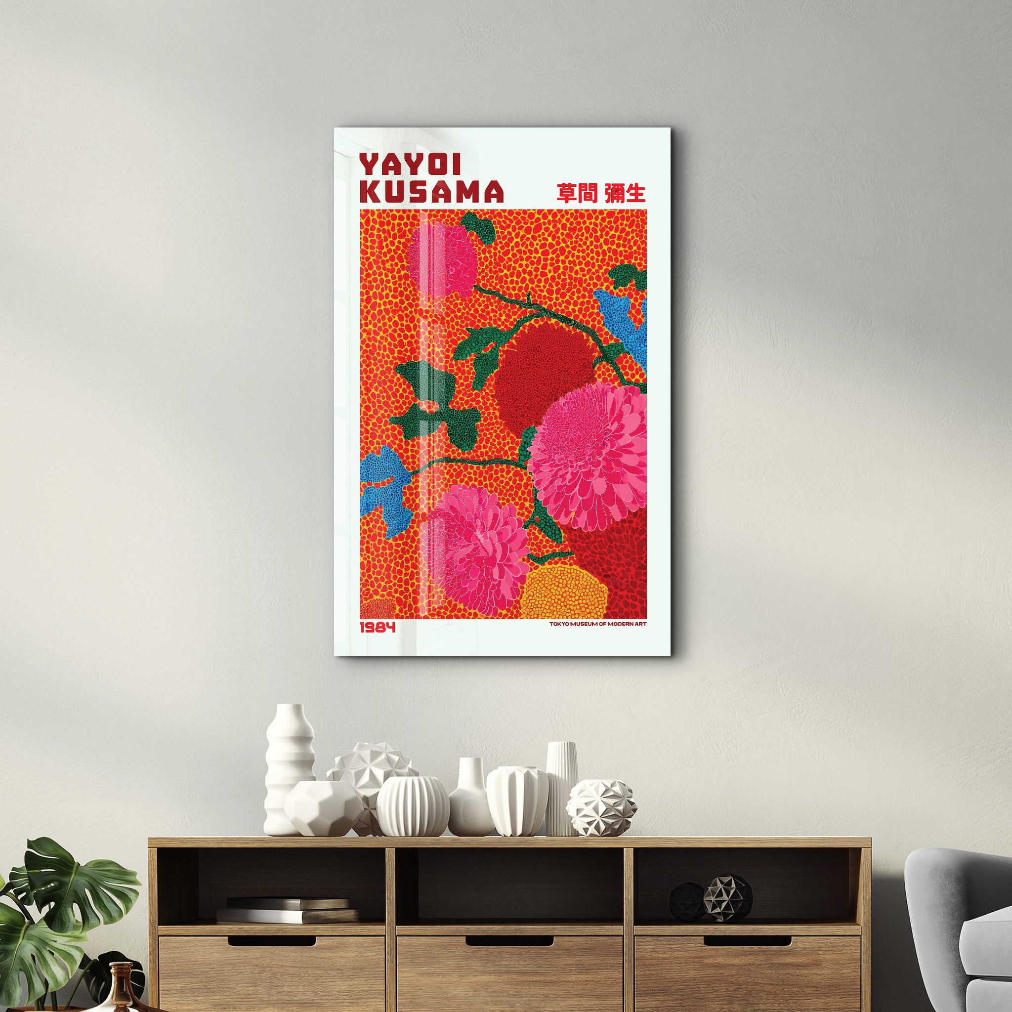 Yayoi Kusama – Scarlet Bloom Garden (1984) | Glass Wall Art