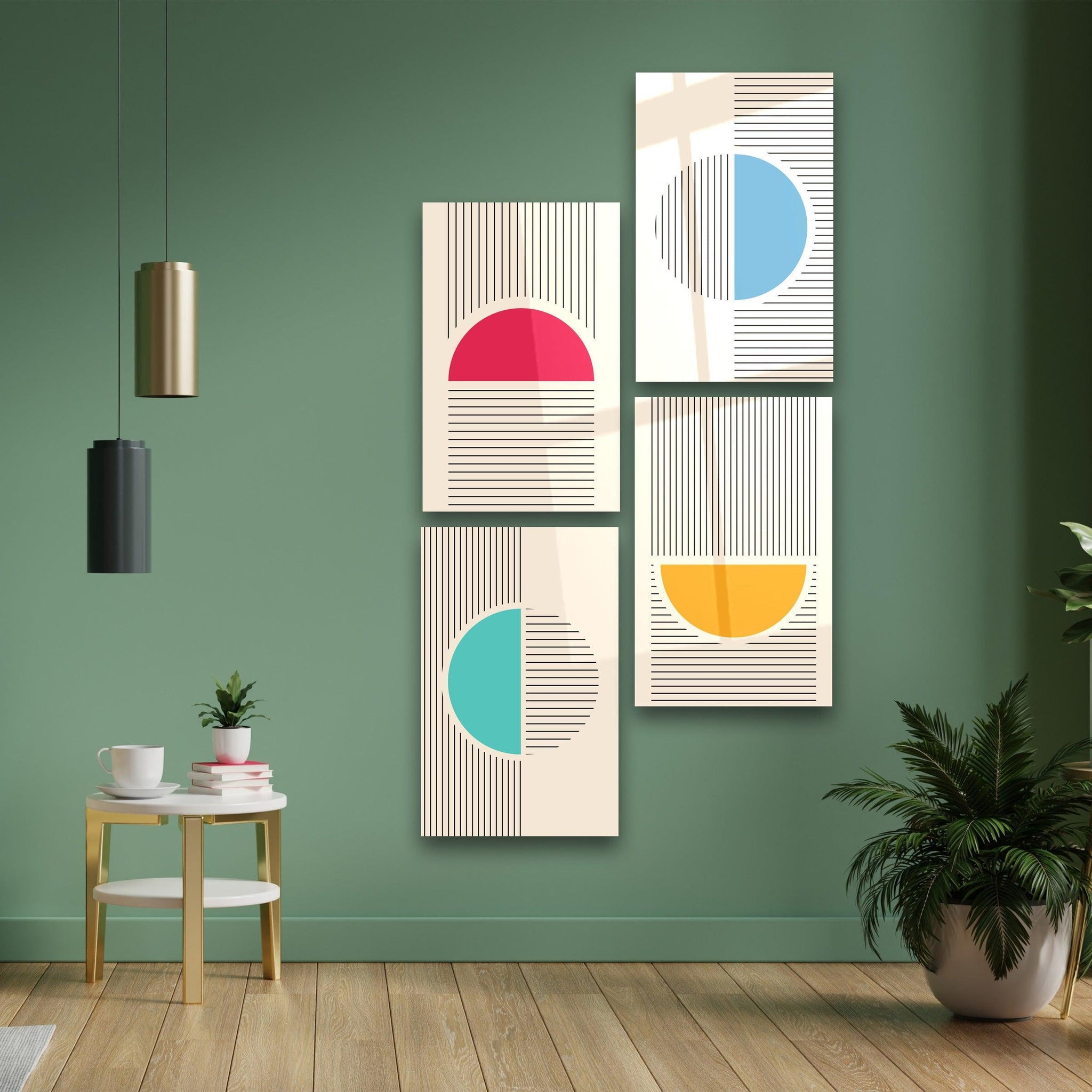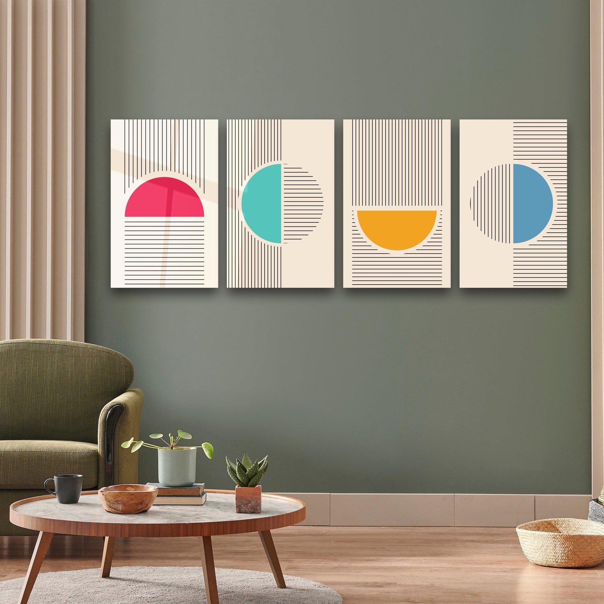 This set consists of 4 pieces of glass wall paintings.
