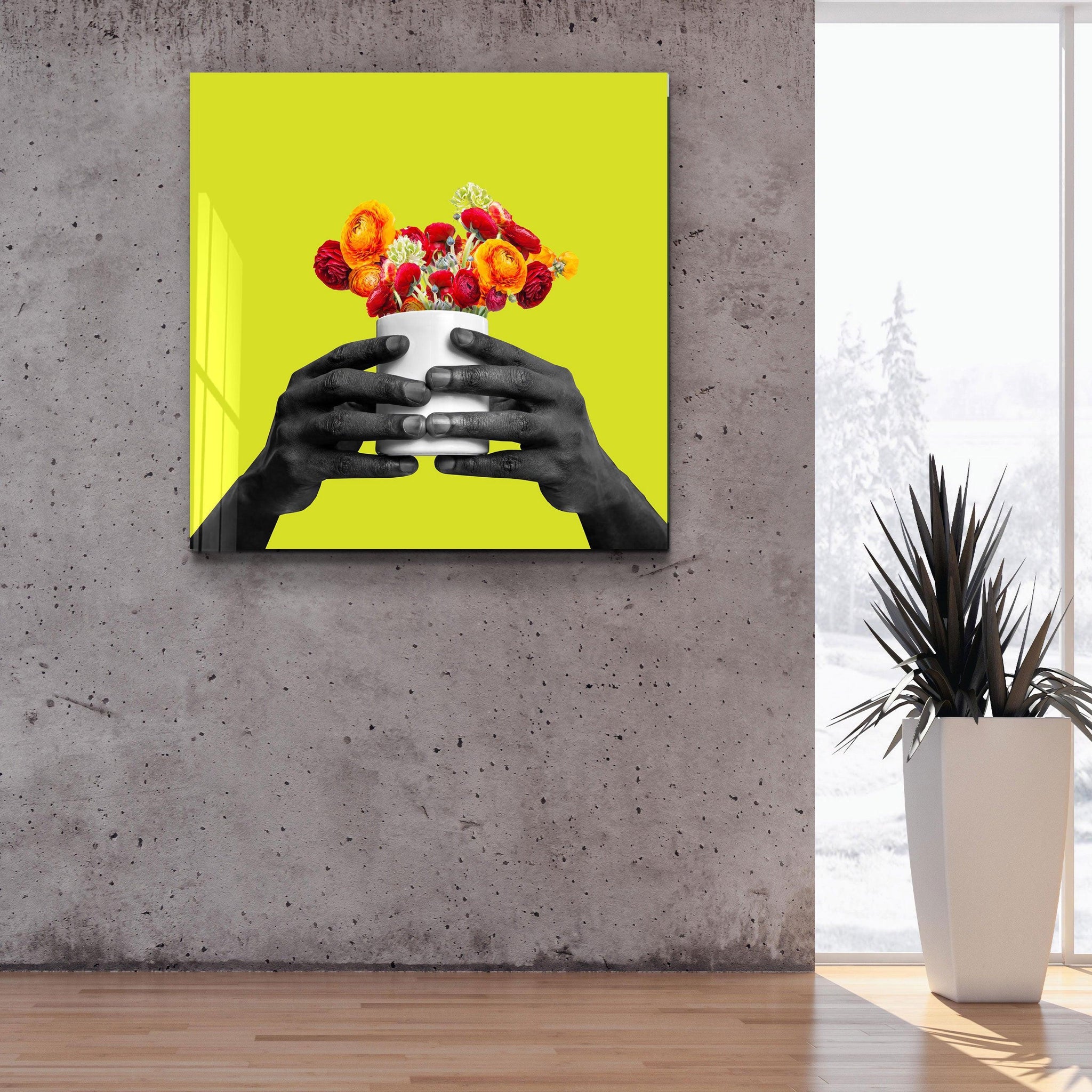 ."Holding the Flower - Lime". Contemporary Collection Glass Wall Art