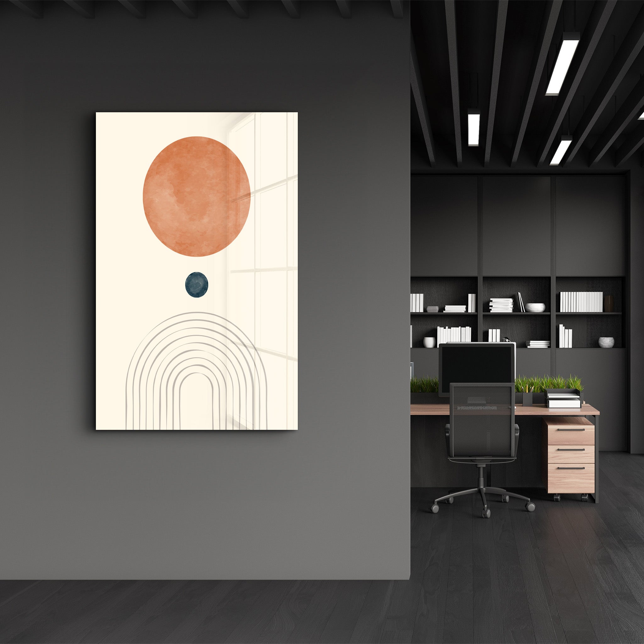 Sun & Arches captures a warm, minimalist composition with a bold terracotta circle above layered arch lines and a deep navy accent. Its clean design and balanced layout bring a modern yet timeless look to any living room, bedroom, or creative space.